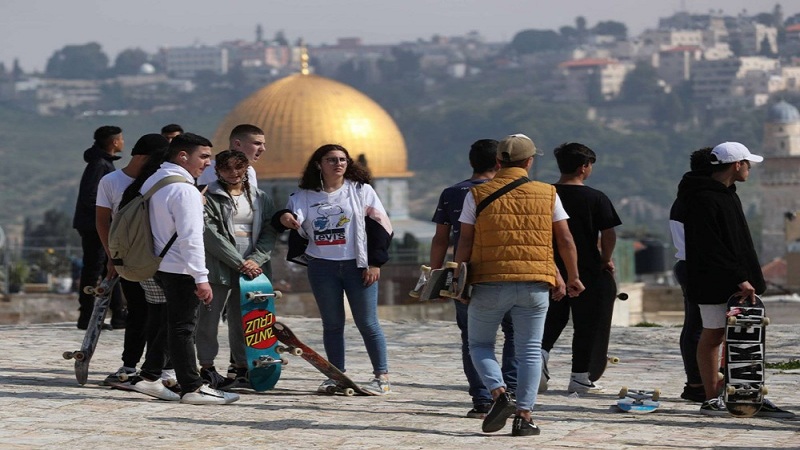 القدس المحتلة: هربا من ضغوط الحياة، يمارس شبان رياضة التزلج على الألواح وسط الأزقة وفوق مباني القدس القديمة، مستغلين الفترات المسموح فيها بالخروج خلال إجراءات الإغلاق العام الإسرائيلية المفروضة على المدينة المقدسة، والتي استمرت ستة أسابيع للحد من تفشي كورونا.