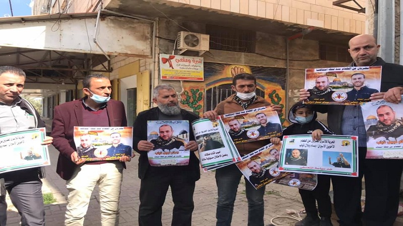 جنين: نفذت اللجنة الشعبية لإطلاق سراح الأسرى، ونادي الأسير، والقوى الوطنية والإسلامية في محافظة جنين، اليوم الاثنين، وقفة إسناد ودعم مع الأسيرين الشقيقين المضربين عن الطعام بلال وبسام ذياب، ضد سياسة اعتقالهما التعسفي، وعزلهما في زنازين" الجلمة"، والأسير الجريح نور الدين البيطاوي الذي تم اعتقاله من مخيم جنين، بعد إصابته بجروح خطيرة.