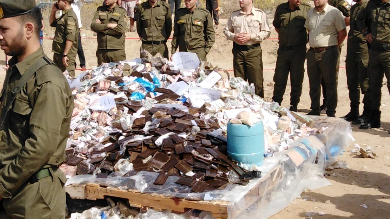 وبلغ إجمالي المواد المخدرة التي تم إتلافها حوالي 10 آلاف كرتونة مواد مخدرة بعدد إجمالي قدره مليون و242 قرص مخدر، و1383.5 فرش حشيش – وزن 100 جرام، و900 جرام من مادة الأفيون.