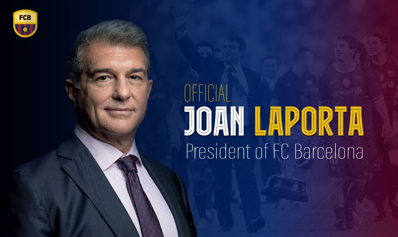 وأكد برشلونة عبر موقعه الرسمي على الانترنت، أن السيد خوان لابورتا هو رئيس النادي الجديد لست سنوات قادمة أي حتى عام 2027، وذلك بعدما تفوق على فيكتور فونت وتوني فريتشا.