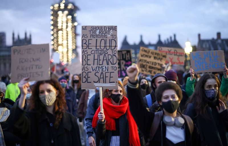 لندن: احتج متظاهرون غاضبون من عنف الرجال ضد المرأة وممارسات الشرطة الجائرة، اليوم الإثنين، في عدة مناطق في العاصمة البريطانية في أعقاب مقتل سارة إيفرارد.