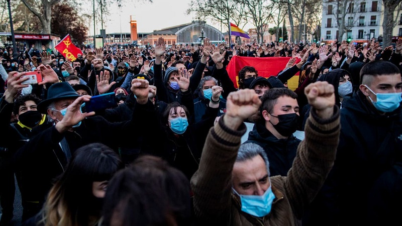 وسار مئات الأشخاص في مدريد بهدوء، مردّدين "الحرّية لبابلو هاسيل ونحن مناهضون للفاشيّة".