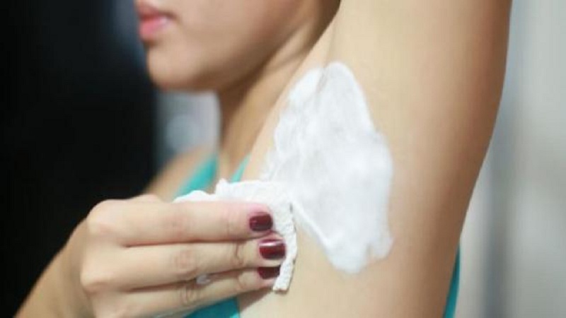 3. بواسطة قطنة نظيفة، طبقي الخليط على منطقة الإبط.