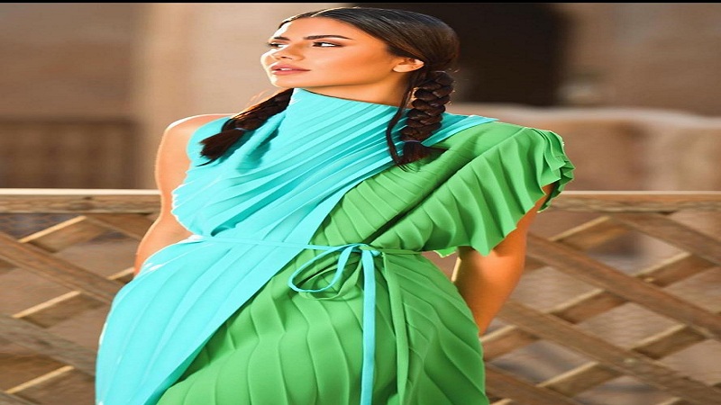 منذ بداية عام 2021 انتشرت صيحة الأزياء المصممة بلونين كقماشين مختلفين بشكل كبير، ولفصل الربيع الحالي يمكنك ارتداء فستان بليسيه خفيف باللون السماوي والأخضر مع حزام ناعم للخصر على طريقة ديما الأسدي، التي أكملت اللوك بتسريحة الضفائر المزدوجة لتضفي لمسة عفوية على مظهرها.