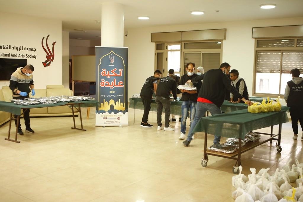 استأنفت "تكية عايدة" التابعة لجمعية الرواد للثقافة والفنون في مخيم عايدة، عملها في اليوم الأول من شهر رمضان، بتقديم وجبات ساخنة للفقراء، والمعوزين، والصائمين، وللمواطنين من ذوي الحالات الميسورة ضمن المناطق المهمشة في مخيم عايدة والمناطق المجاورة في محافظة بيت لحم حيث قدمت في يومها الأول أكثر من 500 وجبة ولتصل لأكثر من 700 وجبة يوميا خلال الشهر الفضيل.