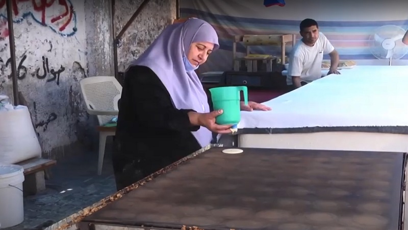 غزة – عمرو طبش: منذ عشرين عاماً تكافح الخمسينية أم إياد صالحة برفقة أبنائها، من خلال مهنة ورثتها عن زوجها ألا وهي صناعة القطايف، في سوق مخيم دير البلح وسط قطاع غزة، لإعالة أسرتها المكونة من سبعة أفراد بعد وفاة زوجها.