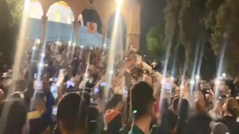 وردد المشاركون في المسيرة التي أقيمت في باحة قبة الصخرة، شعارات منددة بالاحتلال، مطالبين بتوفير الحماية لأبناء شعبنا بعد اعتقال وإصابة المئات خلال جرائم الاحتلال ومستوطنيه في الأسبوعين الأخيرين بالقدس.