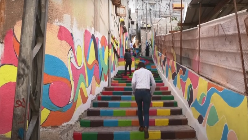 وأوضح أن فكرة مبادرة "حارتنا الملونة" جاءتهم مع بداية انتشار فيروس كورونا في قطاع غزة، وفرض الإغلاق والحظر اليومي، والتي كان هدفها ترميم وتحويل المنطقة من متهالكة إلى منظر جمالي بألوان تعطي أملاً للحياة، مضيفا، "بدأنا بدهان البويات على جميع أدراج المنطقة والجدران المنهمكة بألوان زاهية وبشكل جمالي وملفت للانتباه لتعطي منظراً حضارياً برفقة أهالي سكان الحي".