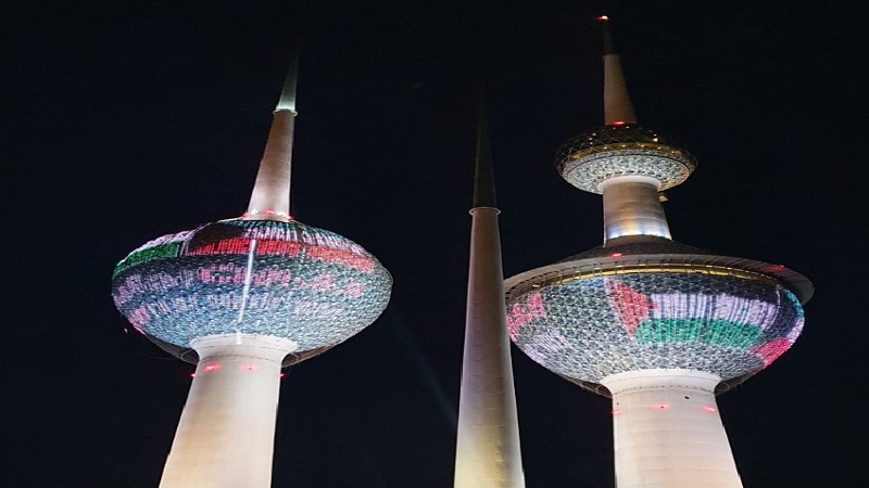 "نحن بجانبكم".. إضاءة أبراج الكويت بألوان علم فلسطين لمدة شهر كامل