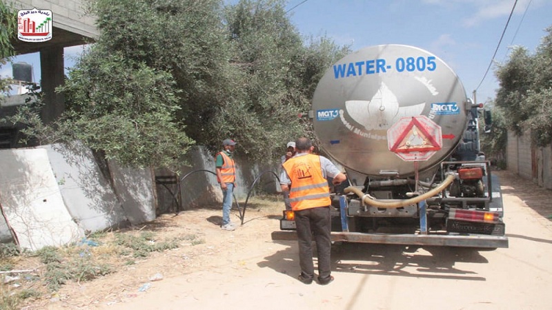 بالصور|| بلدية دير البلح توفر المياه لـ 30 منزلا بعد أضرار لحقت بالخطوط