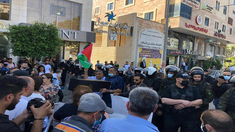 رام الله: نظم المئات مسيرة احتجاجية وسط رام الله، رفضًا لزيارة وزير الخارجية الأمريكي أنتوني بلينكن، للمنطقة.