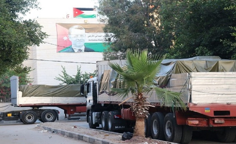 ومن الجدير بالذكر بأن الهيئة الخيرية الأردنية الهاشمية وحسب التوجيهات الملكية كانت قد سيرت 32 شاحنة تحمل مستلزمات طبية وأدوية ومواد غذائية ومواد إغاثية ولقاح كورونا وشرائح فحص كورونا إلى قطاع غزة والضفة الفلسطينية والقدس، وبالتنسيق مع القوات المسلحة الأردنية–الجيش العربي.