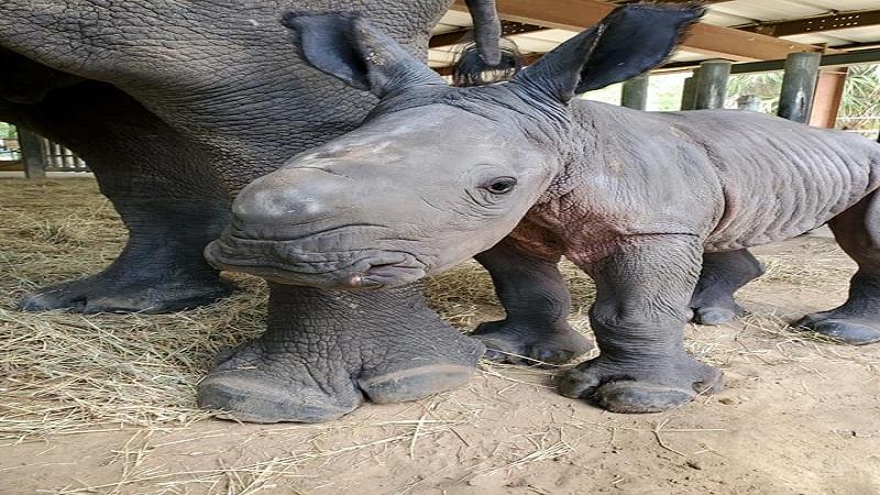 بالصور|| ولادة أنثى لوحيد القرن الأبيض المهدد بخطر الانقراض