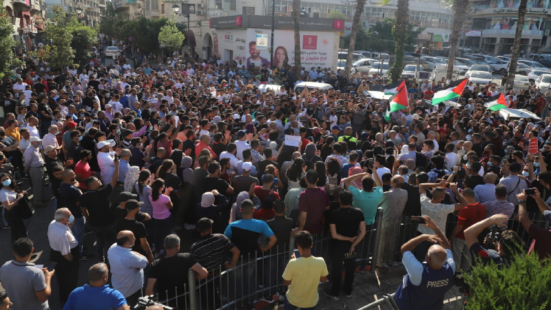 رام الله: تشهد مدينة رام الله، الآن، مظاهرات حاشدة بمشاركة آلاف المواطنين للتنديد باغتيال المعارض السياسي نزار بنات، الذي استشهد على يد أفراد من أجهزة أمن السلطة، أول أمس الخميس.