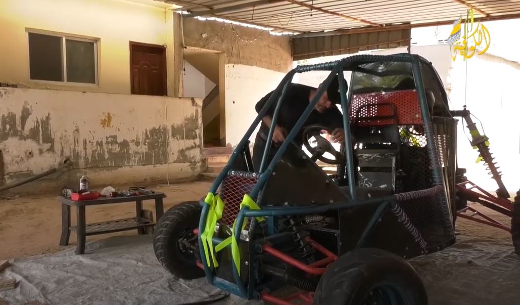 وأوضح، أنه في البداية قام بجمع قطع غيار سيارة بجي من أسواق الخردة في غزة بصعوبة بالغة، نظراً لكون هذه القطع ممنوع إدخالها الى القطاع، ولكنه قام بصناعة قطع مشابهة لها، مستخدماً أدوات بسيطة في الصناعة منها "الديسك، المقدح، المفكات، مفاتيح التي، ماكينة لحام".