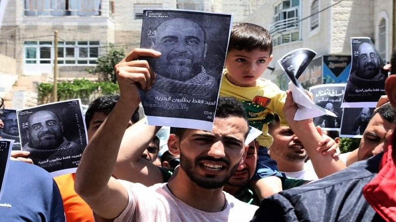 الخليل: الآلاف يشاركون في تظاهرة للتنديد باغتيال الشهيد بنات