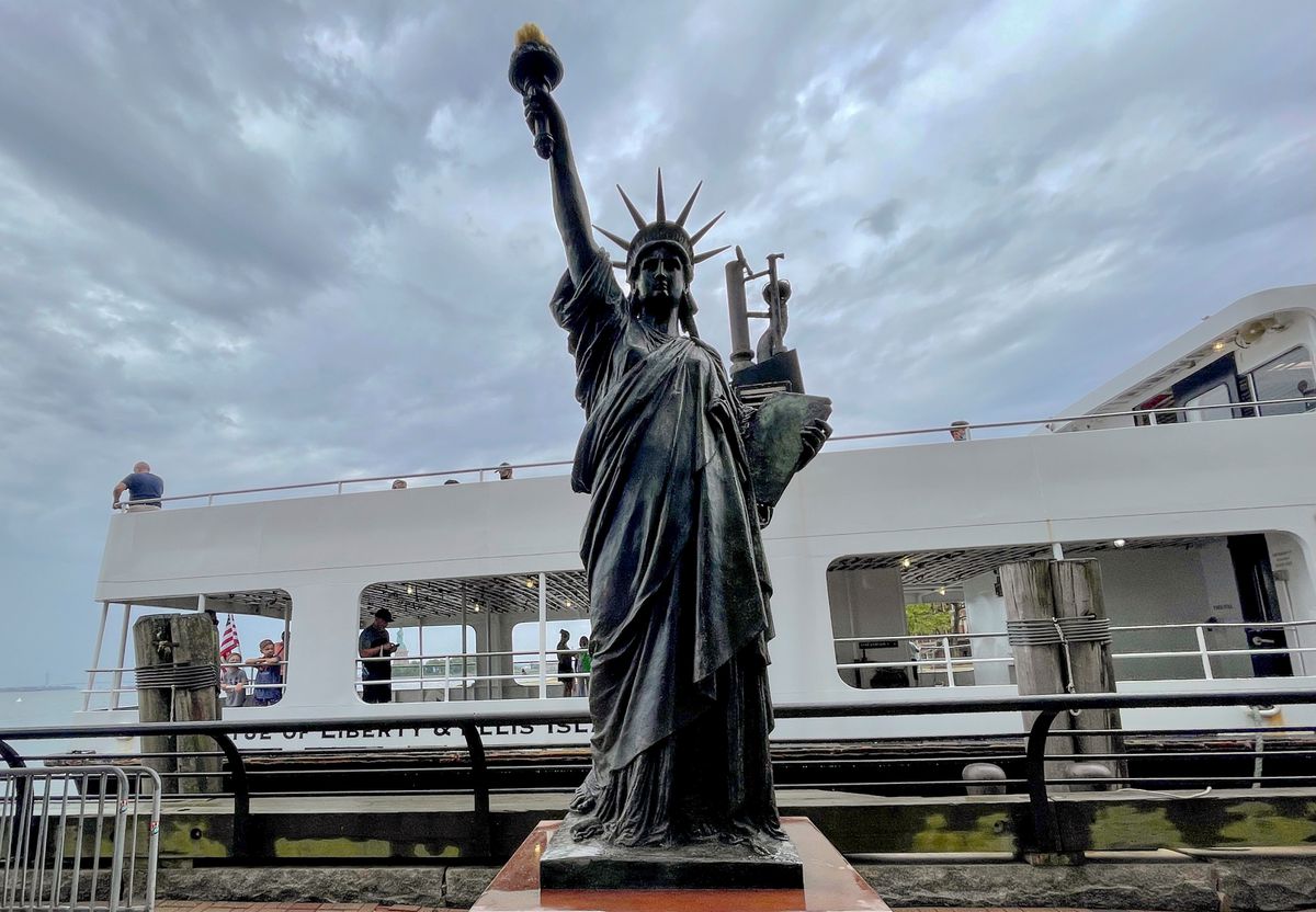 بالصور|| وصول تمثال الحرية الصغير إلى نيويورك بعد رحلته عبر المحيط الأطلسى