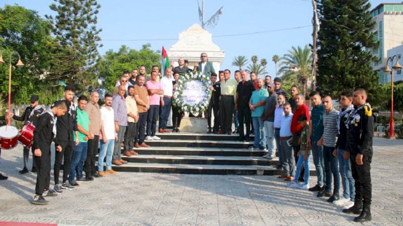 بالصور|| تيار الإصلاح يضع إكليلا من الزهور على النصب التذكاري للجندي المجهول في قطاع غزة