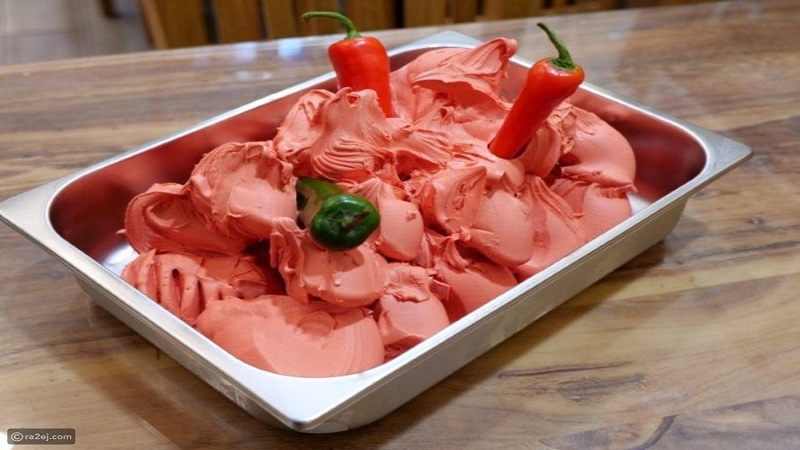 يفضل البعض الشعور بالحار عند تناول الآيس كريم، الذي يعتبر من ضمن الأطعمة الغريبة لدى البعض، إذ انتشر على منصات التواصل فيديوهات لهذه الوصفة، من خلال وضع الفلفل الحار على الآيس كريم سواء بالشوكولاتة أو الفانيليا.