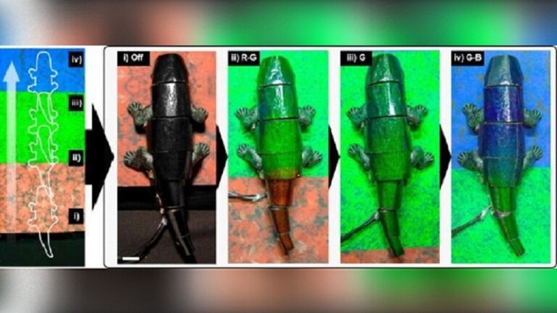 واختبر الباحثون، جلد الحرباء على الروبوت، وتبين أنه يغير لونه وفقًا للوسط المحيط.