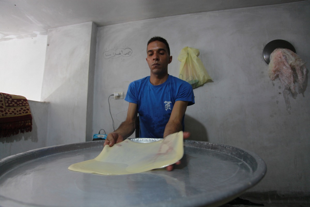 الفطائر من صُنع أيدي اللاجئ أحمد علي "32 عاماً"، حيث يحرص أهالي المخيم على تناول وجبة الإفطار من فطائره الشهية، حيث تخصص فقط في بيع "المشلتت".