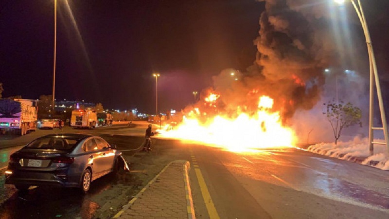 من جهته نشر الدفاع المدني السعودي، بيانا قال فيه، أخمد مدني مكة المكرمة حريقًا في ناقلة مواد بترولية على طريق جدة - مكة السريع نتج عنه احتراق الناقلة و10 مركبات، دون وقوع إصابات -ولله الحمد.