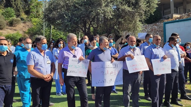 بالصور|| عاملو المستشفيات الأهلية يحتجون في الناصرة للمطالبة بمستحقاتهم