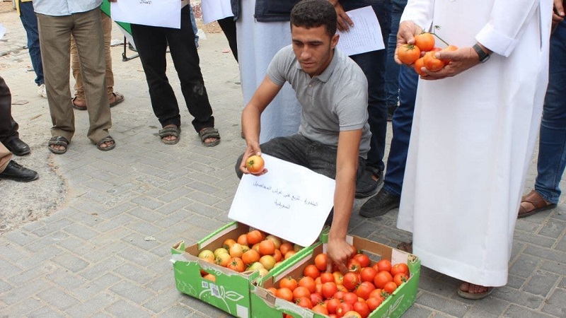 مزارعو غزة يتلفون محصول "البندورة" أمام مقر الأمم المتحدة