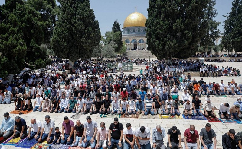 وقالت دائرة الأوقاف الإسلامية في القدس المحتلة، إن "المصلين توافدوا منذ ساعات الصباح إلى المسجد الأقصى، وسط إجراءات عسكرية إسرائيلية مشددة على أبوابه".