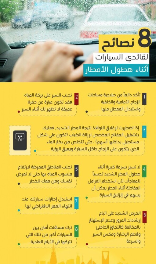 8 نصائح لقائدي السيارات أثناء هطول الأمطار
