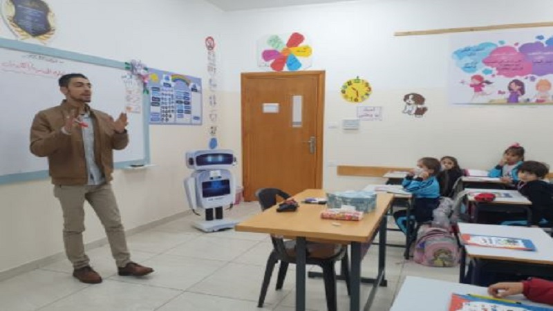 يُعد "مستر روبوت" الأول على مستوى فلسطين، الذي يشارك في العملية التعليمية داخل الفصول الدراسية.