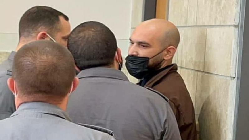 ووثقت عدسات الكاميرات، الأسـير أيهم كممجي ينشد قصيدة من الشعر كتبها في زنزانته، خلال جلسة المحاكمة.