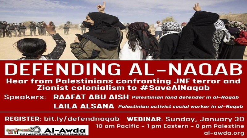 ونشرت شبكة الجالية الفلسطينية في الولايات المتحدة عبر صفحاتها على مواقع التواصل الاجتماعي دعوات لمناصري وداعمي الشعب الفلسطيني للمشاركة بكثافة في مسيرة السيارات، للمطالبة بوقف اقتلاع الفلسطينيين من النقب، وإلغاء الصفة الخيرية عن للصندوق القومي اليهودي ومنظمات المستوطنين التي تحصل على إعفاءات ضريبية لتمويل أعمال العنف والتطهير العرقي ضد شعبنا.