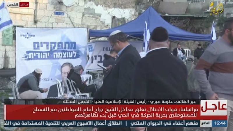 واقتحمت قوات الاحتلال حي الشيخ جراح، اليوم الأحد، لتوفير الحماية للمستوطنين الذي انتشروا في الشوارع والطرقات واحتشدوا في محيط منزل عائلة سالم، واعتدوا على المواطنين وممتلكاتهم، وأقاموا خيمة للمتطرف بن غفير الذي أعاد فتح مكتبه اليوم هناك.