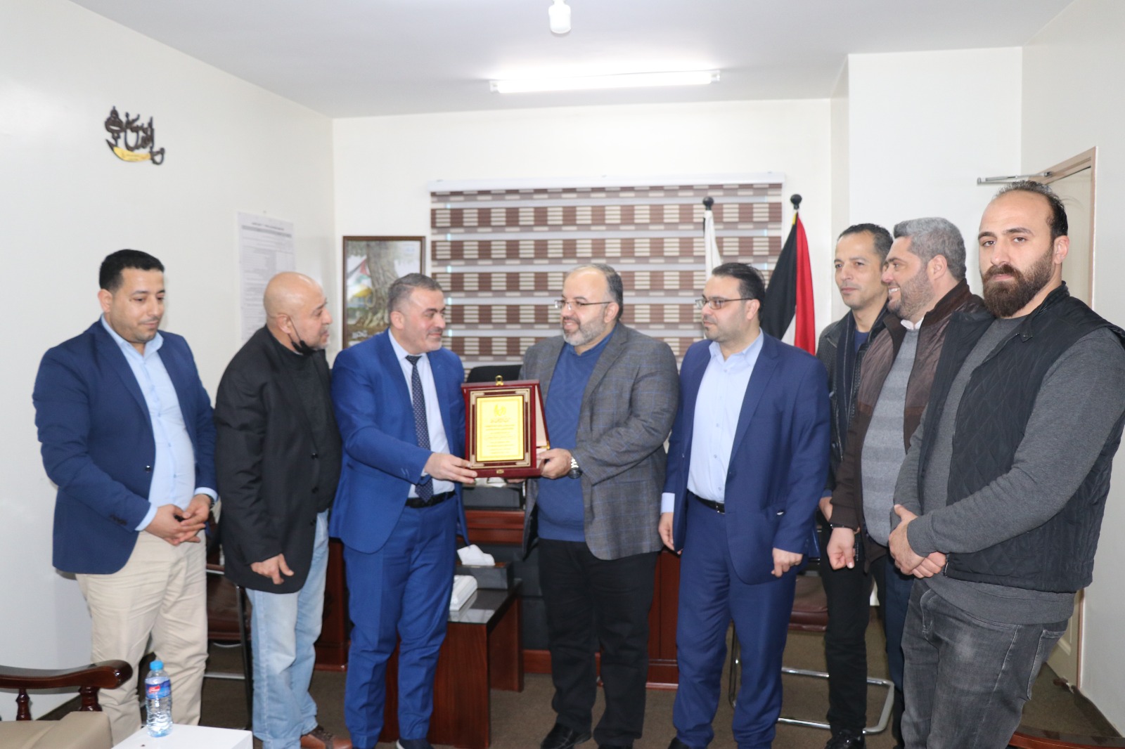 وضم الوفد، مدير مكتب الكوفية أحمد حرب، وأعضاء مجلس الإدارة د. إياد رابعة، وشريف النيرب، وسعود أبو رمضان.
