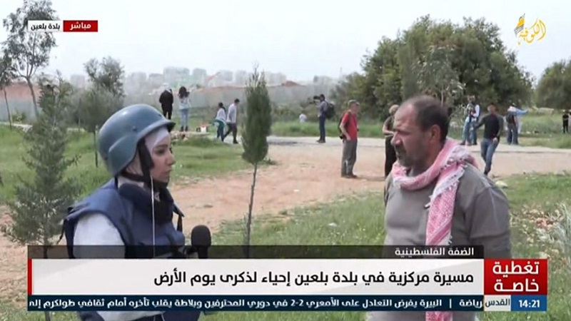 من جانبه، قال الناشط راتب أبو رحمة، إن "أهالي بلعين خرجوا اليوم، للمشاركة في المسيرة المركزية لإحياء يوم الأرض".