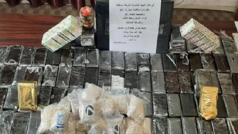 ولفت ضهير إلى أن الكمية تُقدر بـ 540 فرش حشيش، و30 ألف حبة مخدرة من نوع "روتانا"، و2067 حبة من نوع "أترامال".