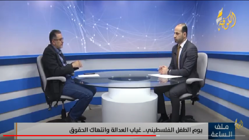 وأضاف في برنامج "ملف الساعة" على "قناة الكوفية"،أن أطفال فلسطين من أكثر الأطفال في العالم الذين يفتقدون إلى أدني مقومات السلامة والمأكل والمأوي، جراء سياسات الاحتلال من القصف العشوائي للمنازل خلال الحروب علي القطاع والقتل المتعمد للأطفال على الحواجز العسكرية في الضفة الفلسطينية.