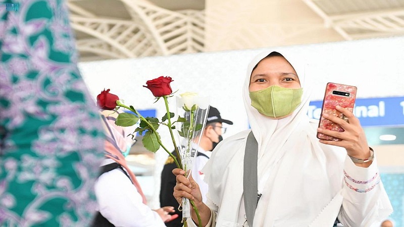 وأشارت "واس"، إلى أنه تم استقبال الحجاج بباقات الورود، وأطباق متنوعة من التمور إضافة لعبوات ماء زمزم.