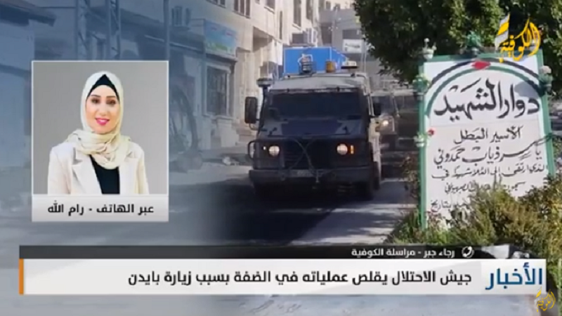 في السياق، أشارت، إلى أن سلطات الاحتلال قلصت عملياتها في مدن الضفة الفلسطينية عشية زيارة جو بايدن للمنطقة، مؤكدًة أن قوات الاحتلال لم تعتقل أي مواطن خلال الليلة الماضية وفجر اليوم.