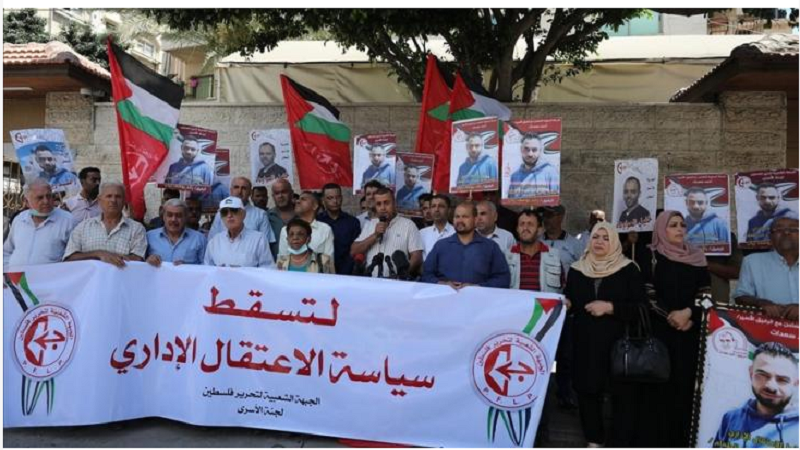 ورفع المشاركون في الوقفة، لافتات تُطالب بإنهاء سياسة الاعتقال الإداري.