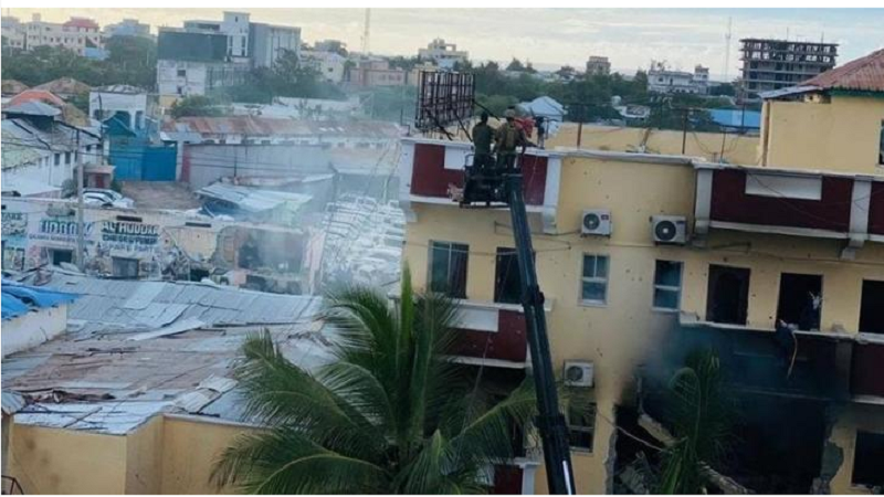 مقديشو: ارتفعت حصيلة ضحايا الهجوم الانتحاري على فندق "حياة" وسط العاصمة الصومالية مقديشو، اليوم السبت، إلى 21 قتيلا و40 مصابا، في وقت تواصل فيه القوات الأمنية مطاردة عناصر حركة "الشباب" الذين ما زالوا يتحصنون داخل الفندق.