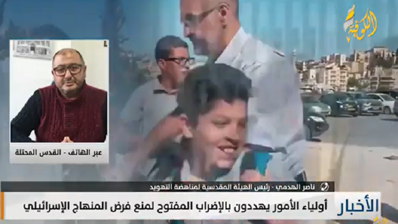 وأشار إلى أن أهالي الطلبة هددوا بفرض إضراب مفتوح، لمنع فرض المنهاج الإسرائيلي"، كأسلوب لرفض ممارسات الاحتلال وتعديها على الحقوق الوطنية.