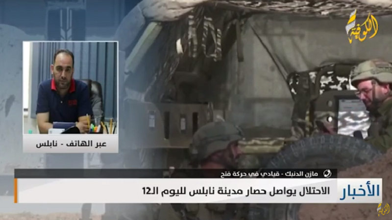 نابلس: أكد القيادي في حركة فتح، مازن الدنبك، أن أهالي نابلس داعمين للمقاومة رغم حصار الاحتلال للمحافظة لليوم الـ 12.