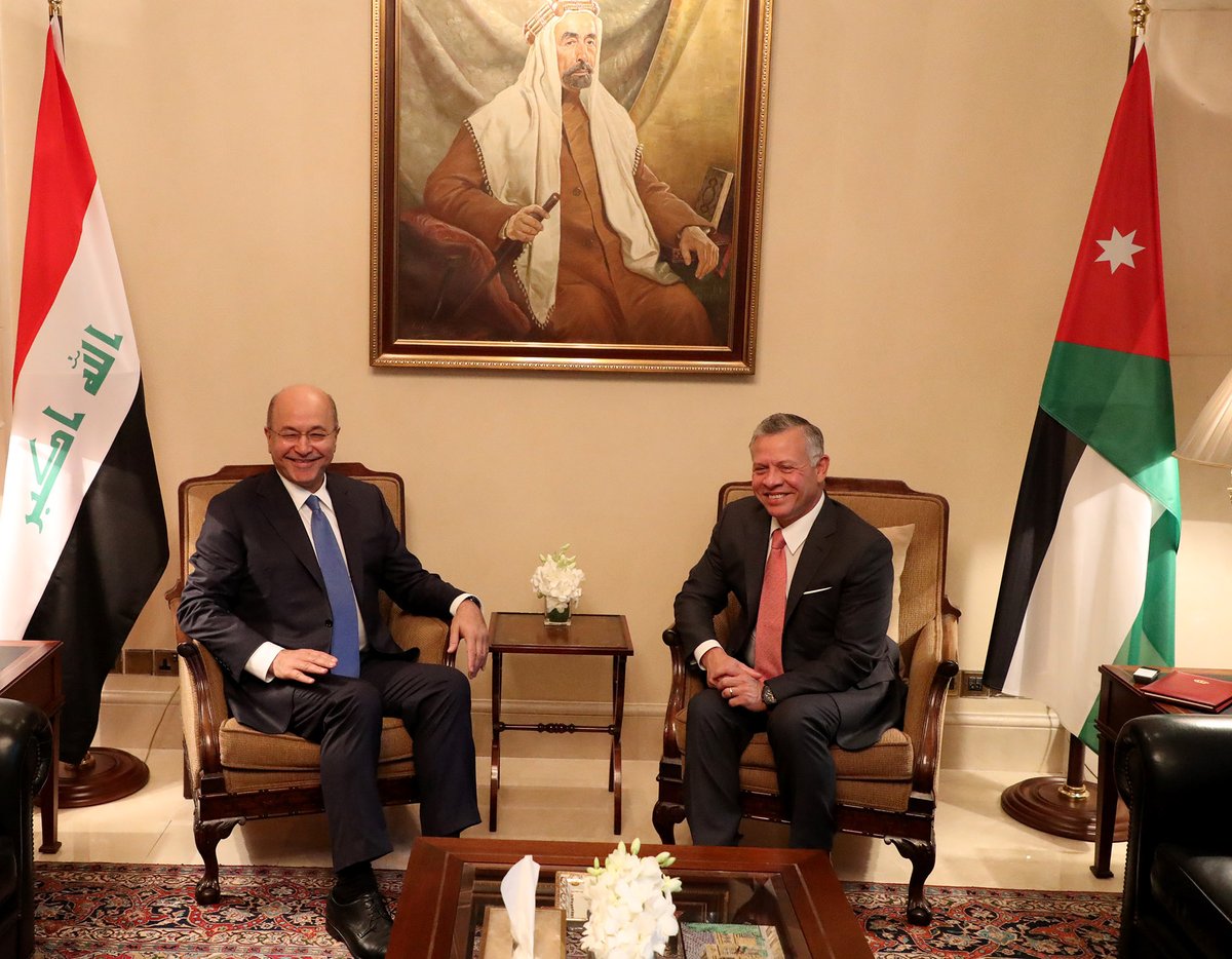 بغداد // التقى الرئيس العراقي برهم صالح يوم الاثنين العاهل الأردني الملك عبد الله الثاني في أول زيارة رسمية له لبغداد منذ أكثر من عشر سنوات.