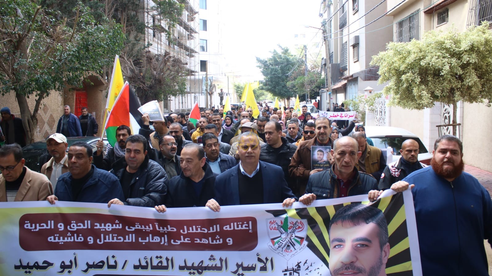 فيديو وصور|| تيار الإصلاح ينظم مسيرة في غزة للمطالبة بالإفراج عن جثمان الشهيد أبو حميد