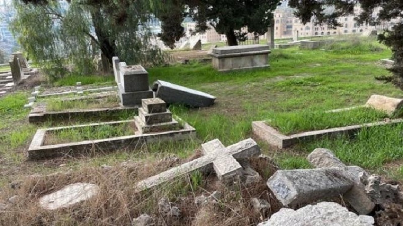 وحطم المستوطنون أمس شواهد ثلاثين قبرا في مقبرة البروتستانتية، التابعة للكنيسة الإنجيلية واللوثرية، وكسروا الصلبان.