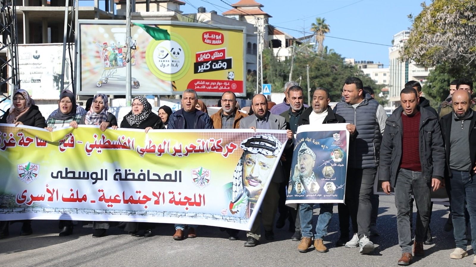 الكوفية غزة: شارك ملف الأسرى ومحافظة الوسطى في حركة فتح بساحة غزة، في الوقفة التضامنية الأسبوعية مع الأسرى بسجون الاحتلال، إسنادا لهم خاصة في الهجمة الشرسة المتواصلة وعمليات القمع والتنكيل بحقهم، وإصدار القوانين العنصرية التي تدعو لسحب الجنسيات من أسرى الداخل المحتل والمطالبة بترحيلهم من بلدانهم .
