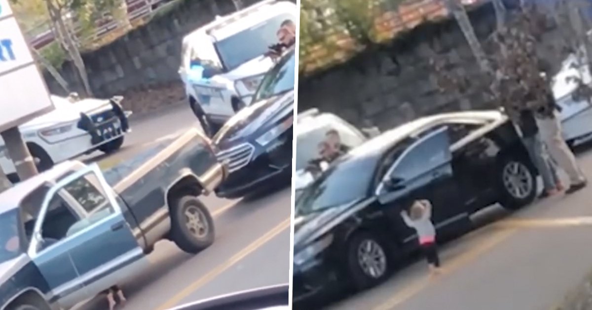 وقالت الشرطة أنها أوقفت سيارة اشتبه بوجود متهم بداخلها، بعد الإبلاغ عن سرقة قام بها رجل مسلح الخميس الماضى، وكان بداخل السيارة طفلة تبلغ من العمر عامين وصبى عمره عام واحد، وبينما يعتقل الضباط المشتبه به، الذى يمكن سماعه على شريط الفيديو يقول إنه أب الطفلين، تخرج الفتاة من السيارة وتذهب نحو الشرطة، رافعة يديها للأعلى.