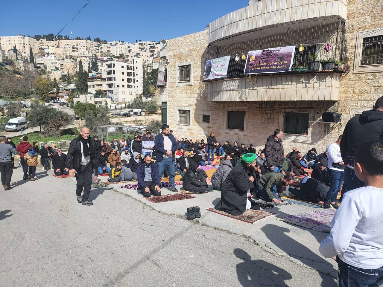 مواطنون يؤدون صلاة الجمعة أمام مبنى مهدد بالهدم في سلوان